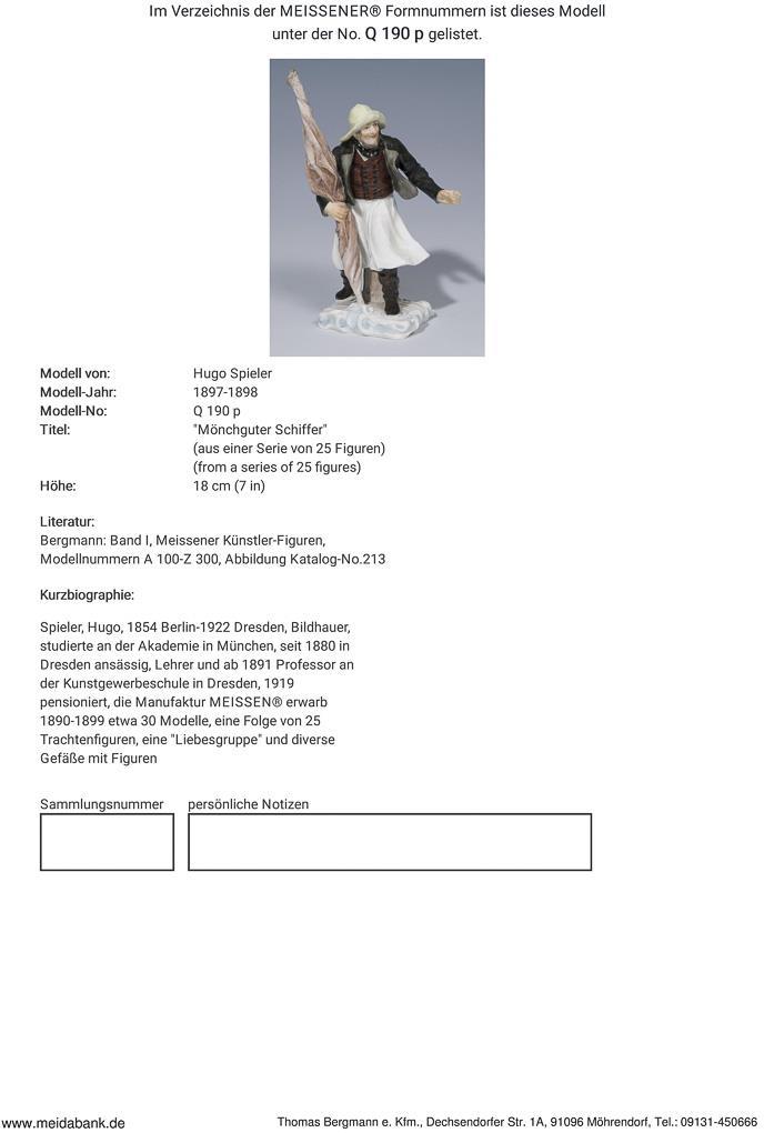 Player, sculptor, studied at the Academy in Munich. Since 1880 active in Dresden, 1891 professor. Meissen acquired about 30 models in 1890-1899 * Partner auction Bergmann.