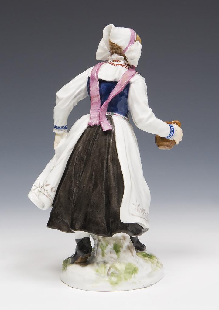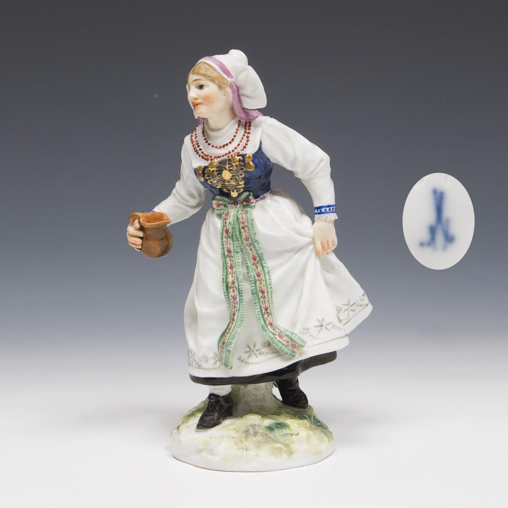 Model by Hugo Spieler 1897-1898. From a series of 25 traditional costume figures. Painted in colors, painted in gold. Incised mark, press mark, painter's mark, sword mark.