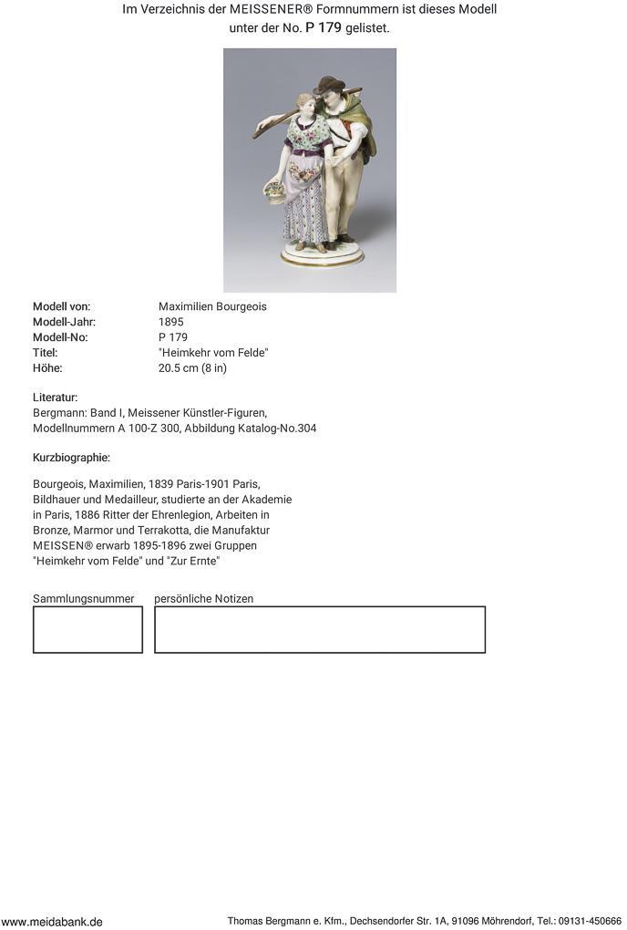 Bourgeois, sculptor and medalist, studied at the Academy in Paris. 1886 Knight of the Legion of Honor. Meissen acquired two groups in 1895-1896 * Partner auction Bergmann.