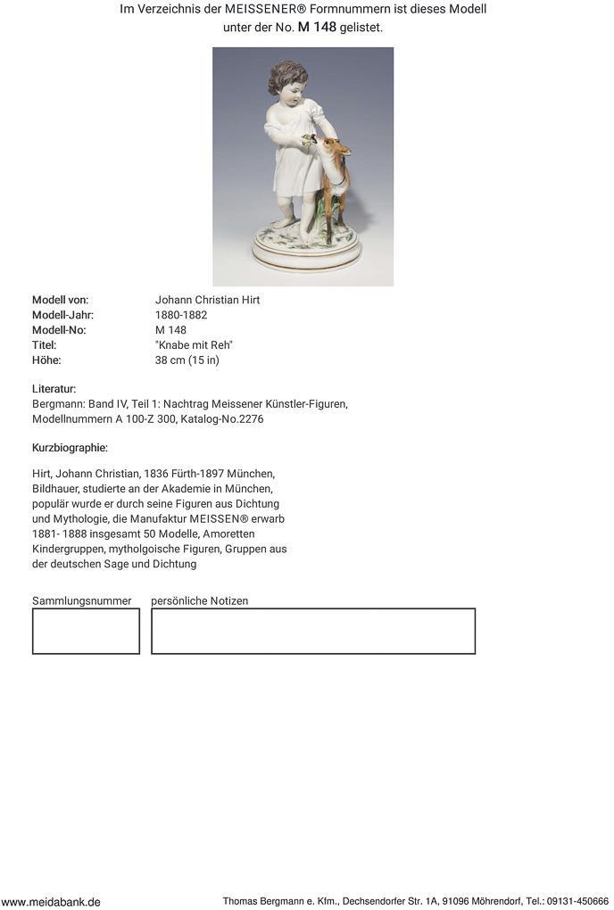 Hirt, sculptor, studied at the Academy in München. He became popular for his figures from poetry and mythology. Meissen acquired a total of 50 models in 1881-1888 * partner auction Bergmann.