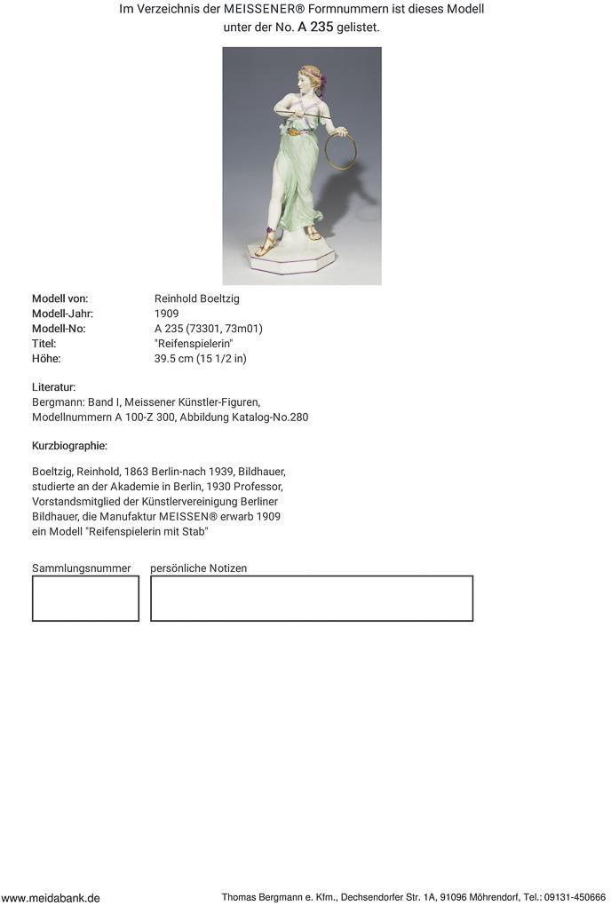 Boeltzig, sculptor, studied at the Academy in Berlin. 1930 Professor, represented at international exhibitions, received various awards. Meissen manufactory price: 11500, - Euro * Partner auction Bergmann.