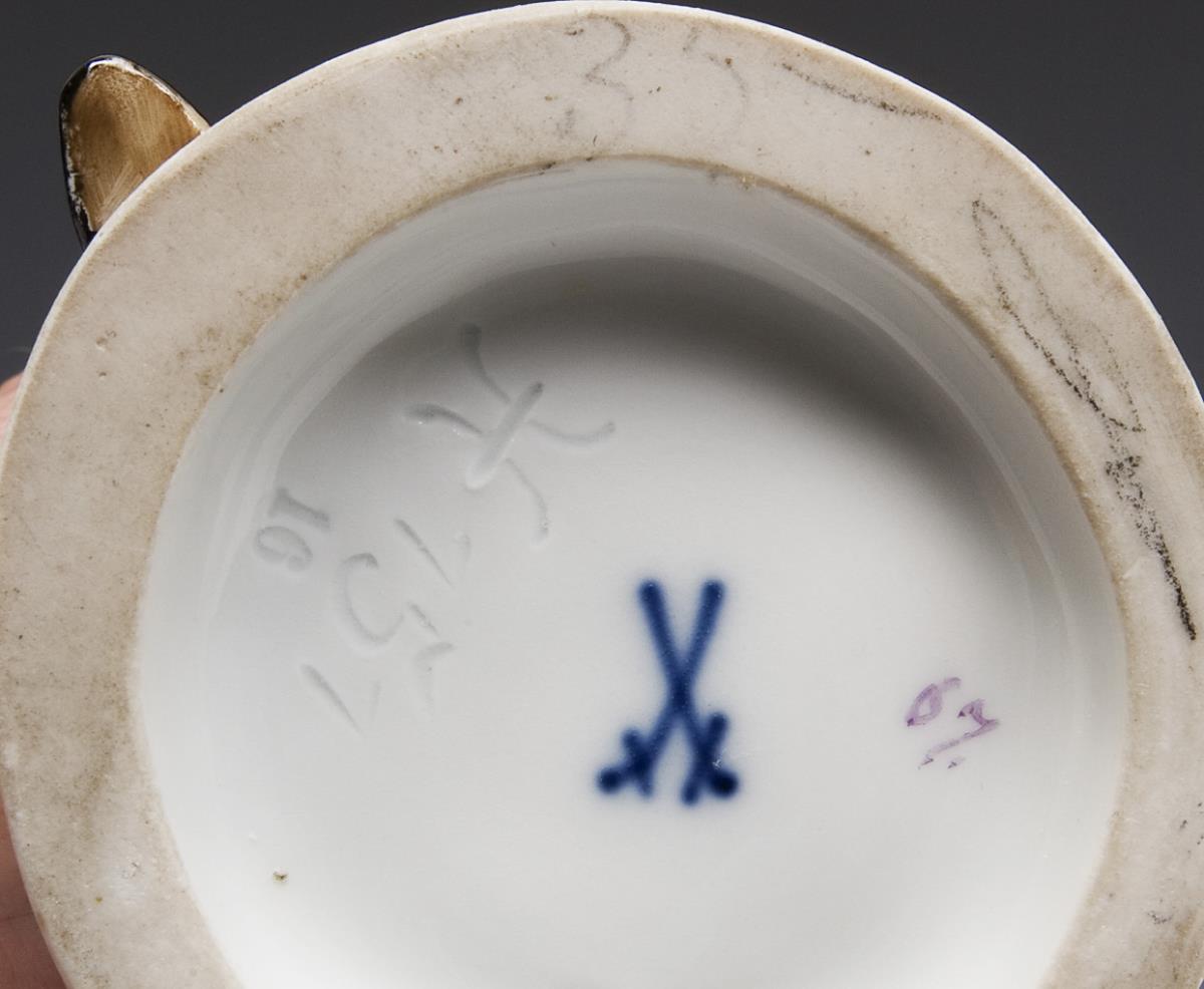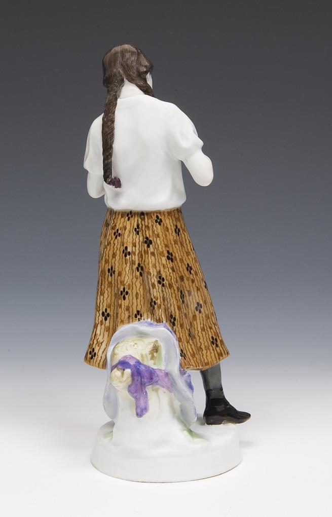 Model by Alfred König 1905-1910. counterpart to model no. W 125. colorfully painted. Incised mark, press mark, painter's mark, sword mark. Back pigtail end restored and bumped, skirt minimally bumped.