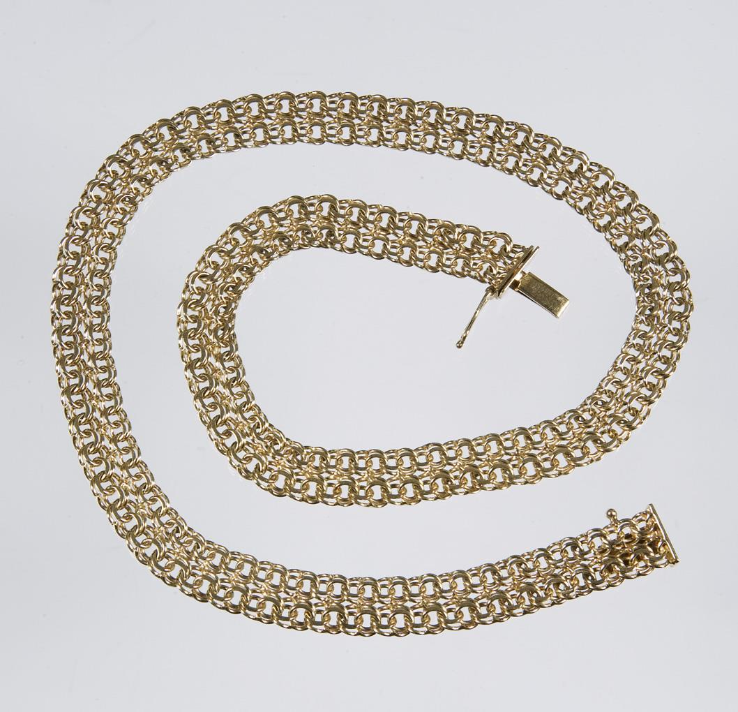 585 yellow gold (14 kt). Length: 44 cm, width: 1 cm. 44.5 grams.