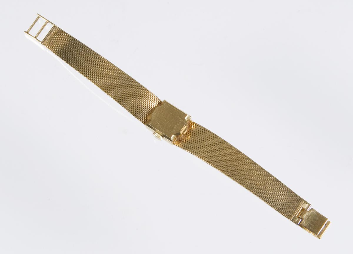 Dial, case and movement signed. Anchor movement, 17 jewels, manual winding. Silver dial, milanese bracelet with ornament decoration. Functioning in short time test.