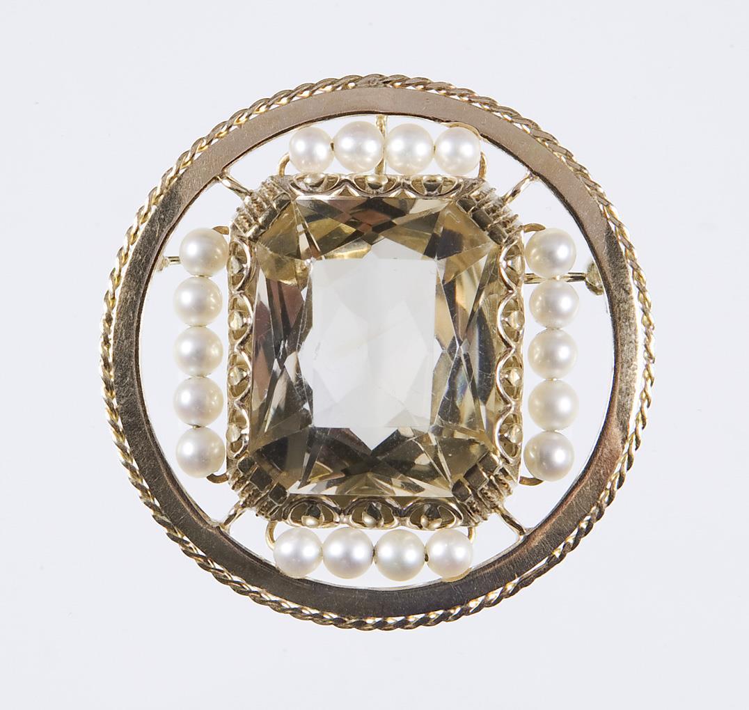 Citrine Pearl Brooch.