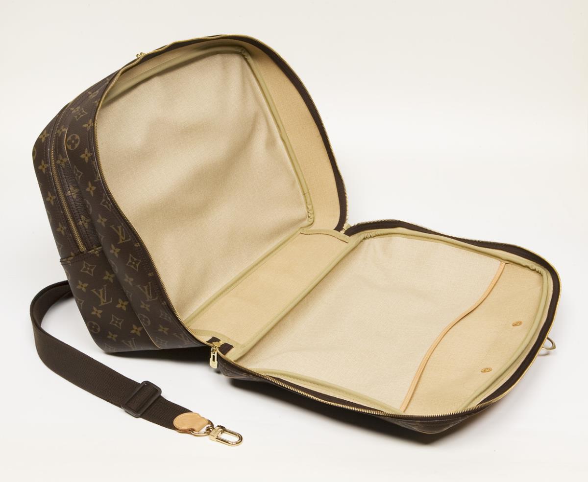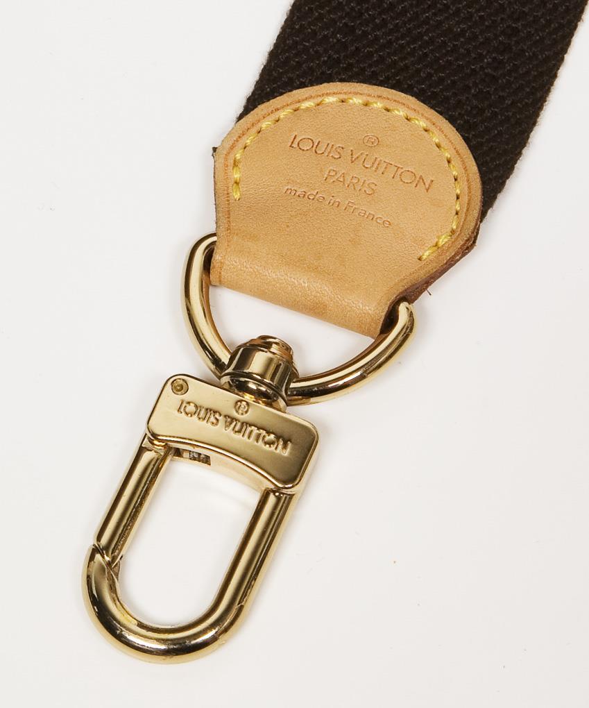 Louis Vuitton travel bag with shoulder strap.