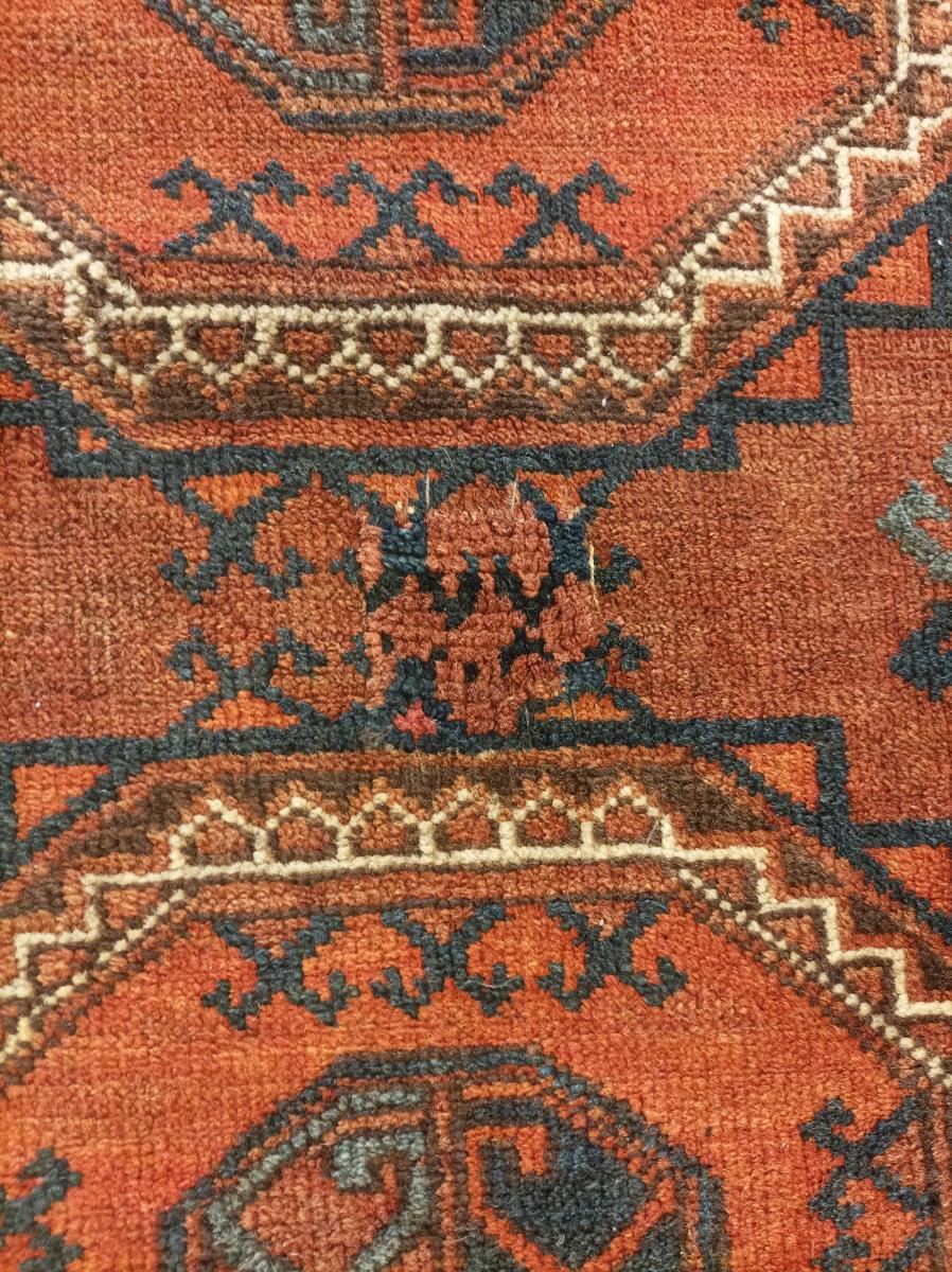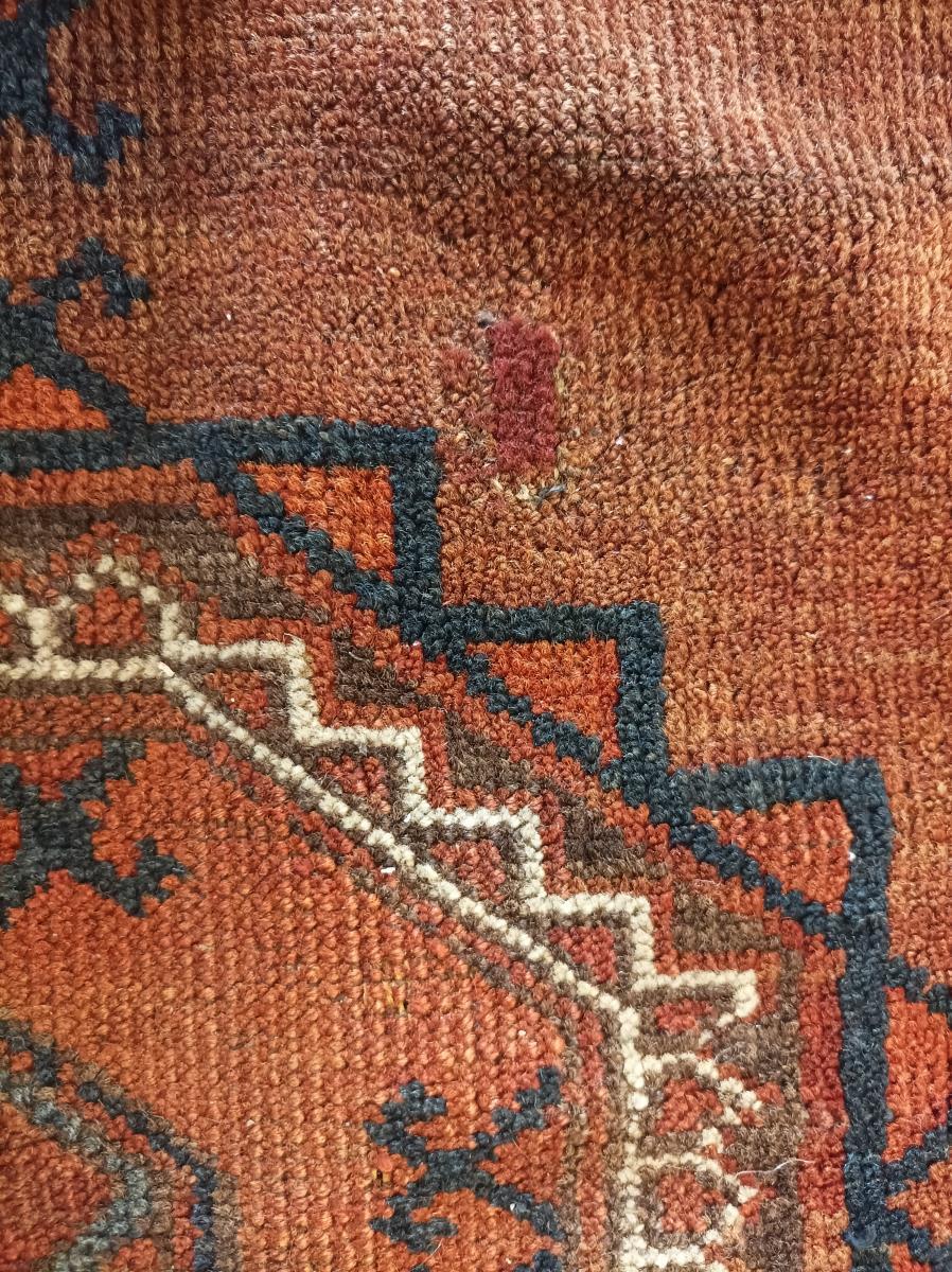 Fine knotting. Signs of use in the inner field, finishes slightly shortened. Supplementary information 22.10.23: Partially small restored areas (see pictures).