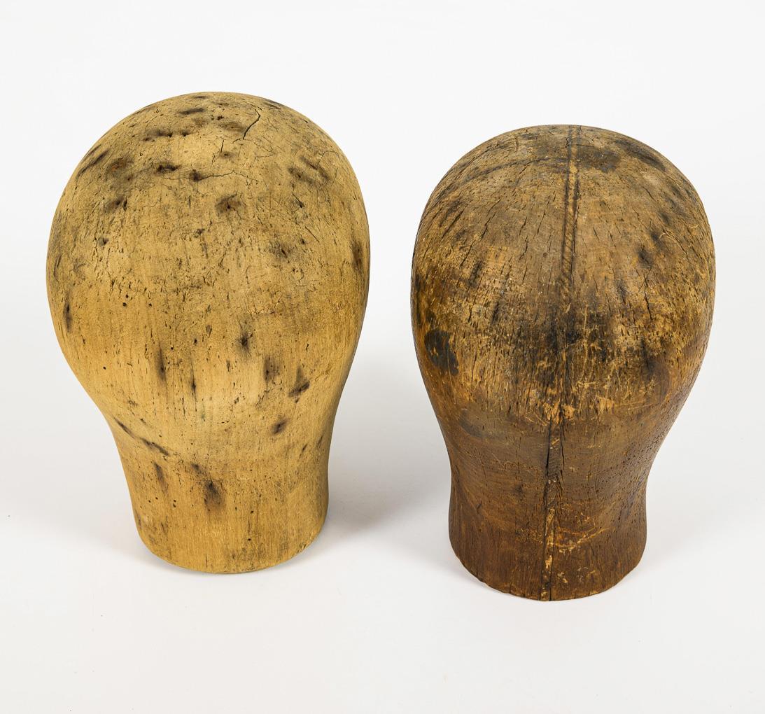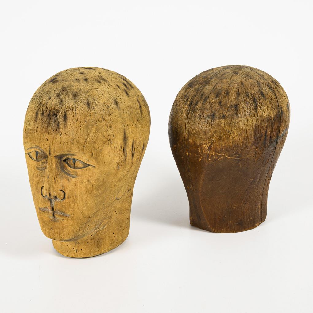 2 wooden wig heads.