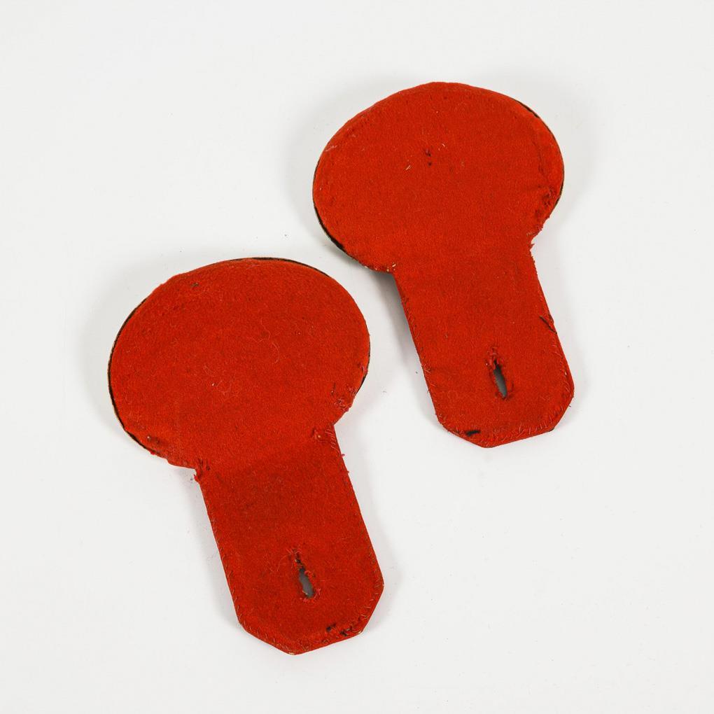 Epaulettes for a captain in the Prussian 1st Guards Regiment of Foot or Garde Du Corps. Two stars on a braided silver wire background, silver-coloured crescents, silver-coloured braid with black edging and red lining. Signs of age and wear.