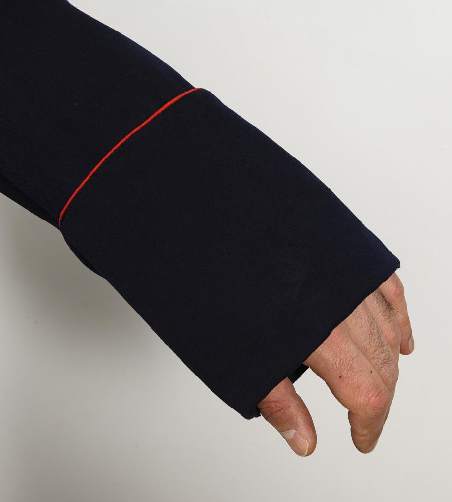 Blue military coat.