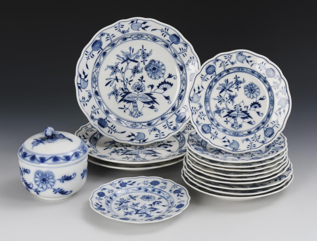 7+4+3 onion pattern plates and 1 -dose. Meissen.