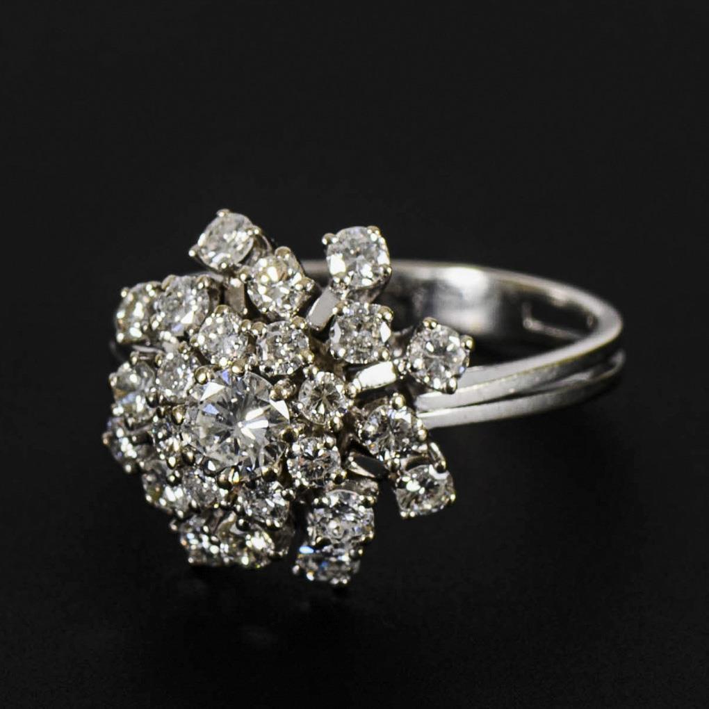 Stamped white gold 585. Center stone 0.44 ct. Brilliants total 1.90 ct/wesselton/si. 6,9 g.