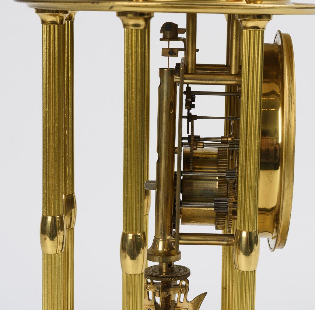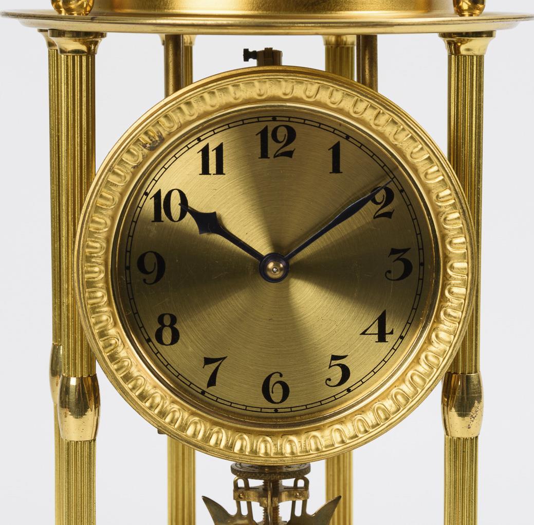 "Annual clock" in the form of a round temple with 6 fluted columns and stepped podium. Signs of age and wear, bell with edge chips.