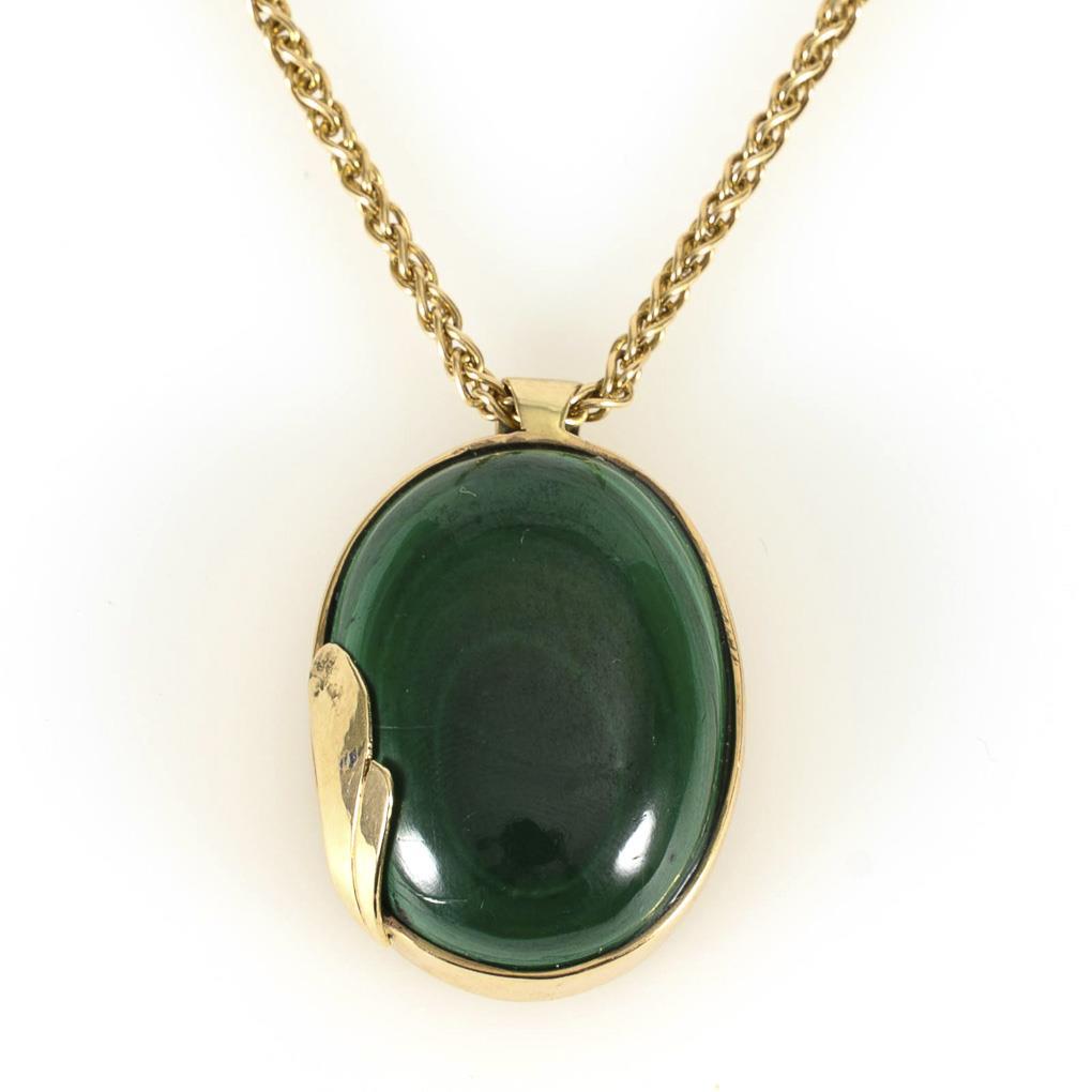 Pendant with malachite on chain.