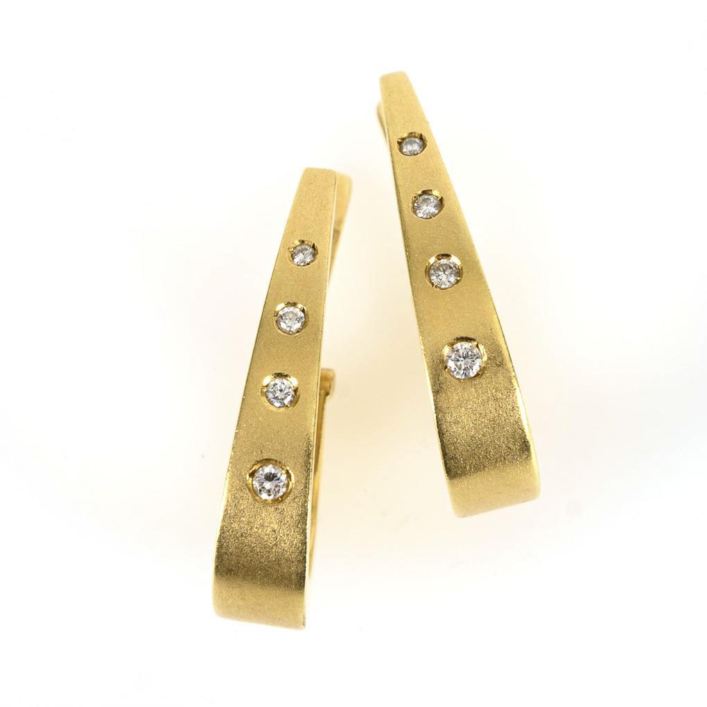 Modern pair of hoop earrings with diamonds.