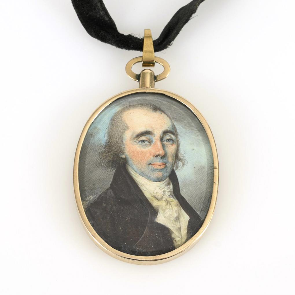 Empire miniature: Portrait of a man in a medallion with velvet ribbon.