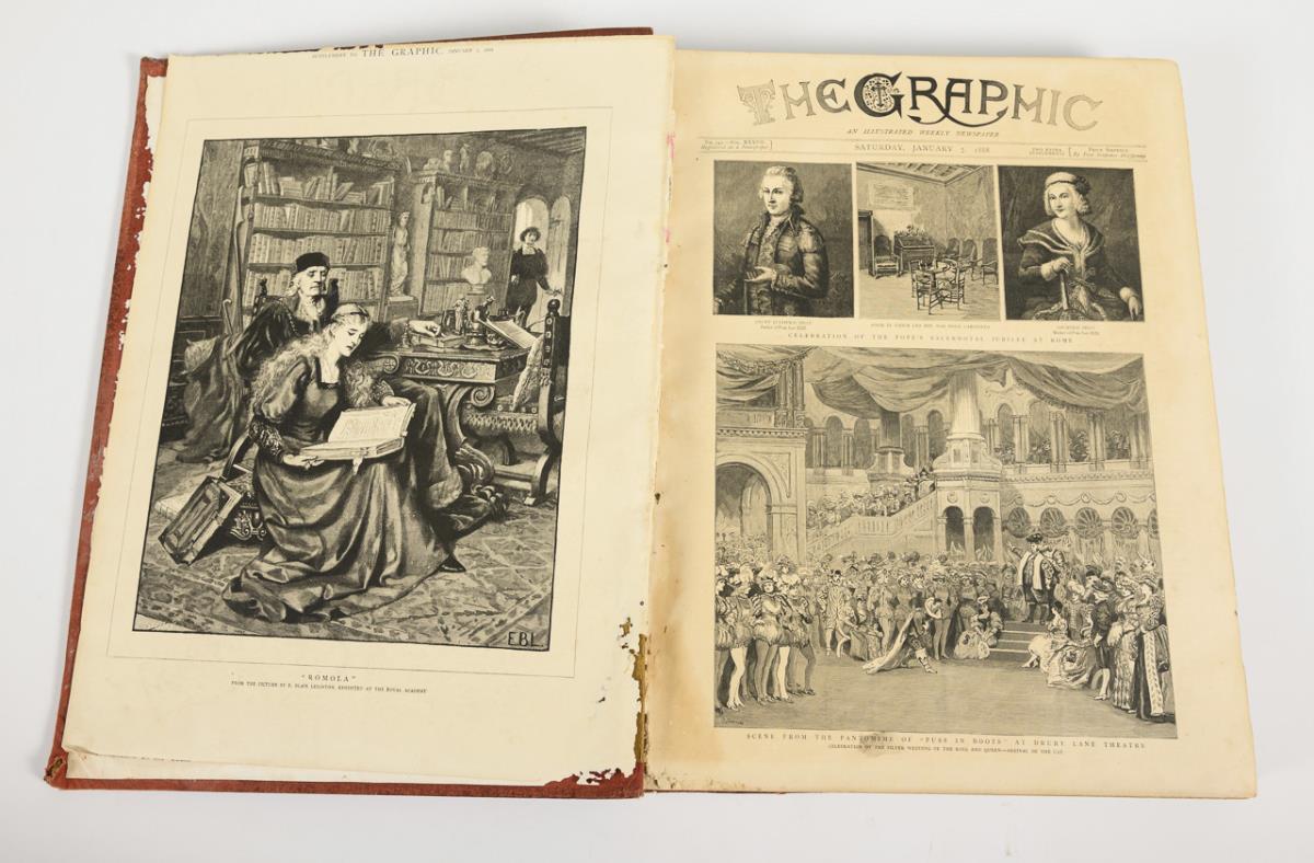 2 volumes of collections of photographs: "The New World", "North, Central and South America". / "In flight through the world". Werner Company, each no year, Chicago, London, Berlin, Paris. Printed canvas covers (brown and green respectively). / Bound English weekly magazine "The Graphic", year 1888. Red cloth binding. 2 loose leaves, covers partly with strong signs of age/use.