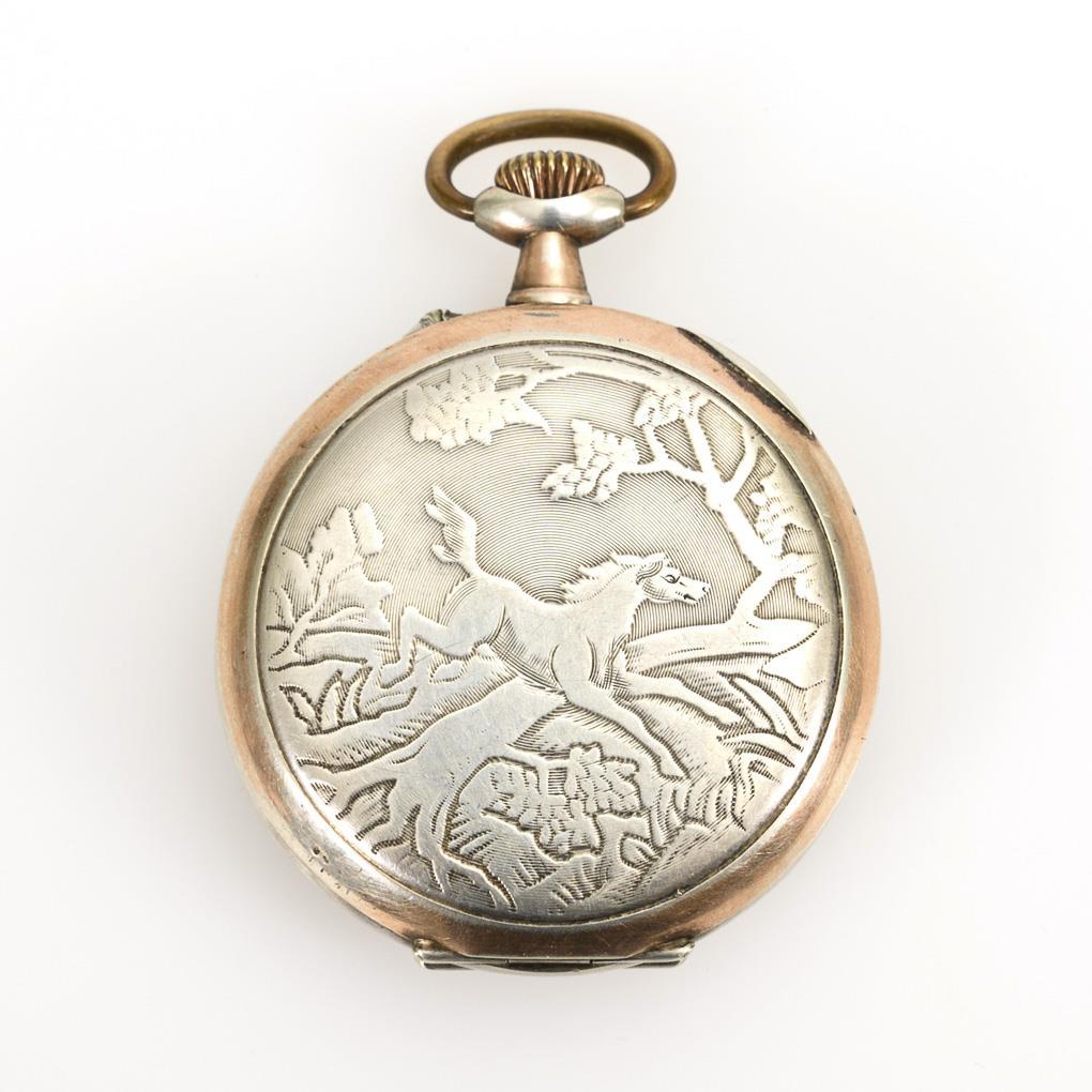 Galonné case with engraving of a jumping horse in a landscape, "metal" dust cover. Signs of age and wear, partial defects, defective hand setting.