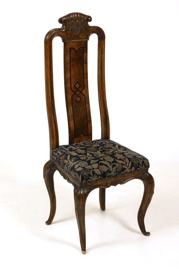 Solid and stained walnut, partly veneered. H approx. 124.5 cm, seat height approx. 44 cm.