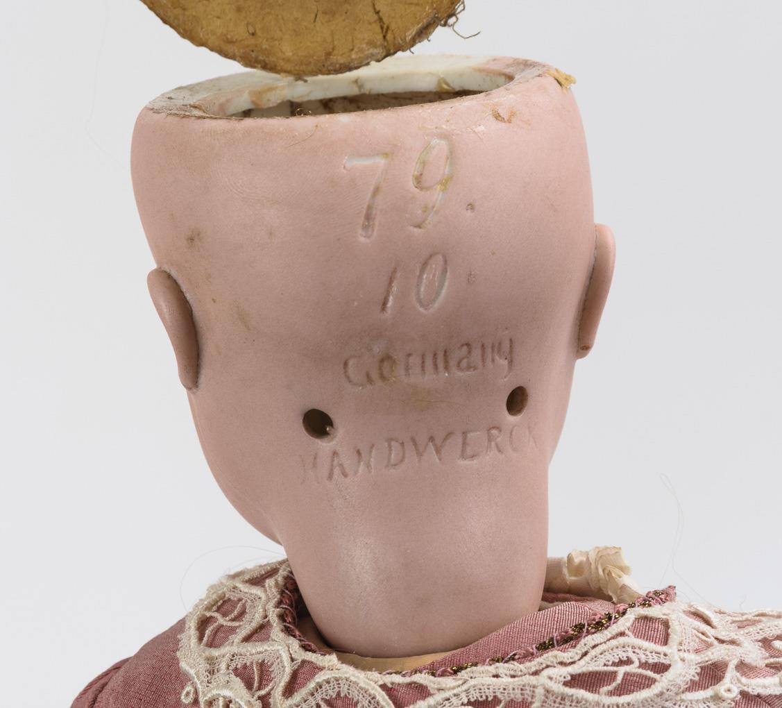 Each with crank head, sleeping eyes, mohair wig, 15-part jointed body (1x stamped in red "Handwerck"), re-sewn dress with white lace trim, light-colored shoes. Heads x-rayed: without defects, 1x sleeping eyes loose.