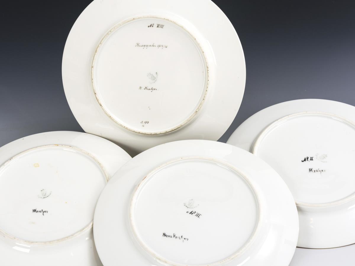 4 plates with historical military depictions. Nymphenburg.