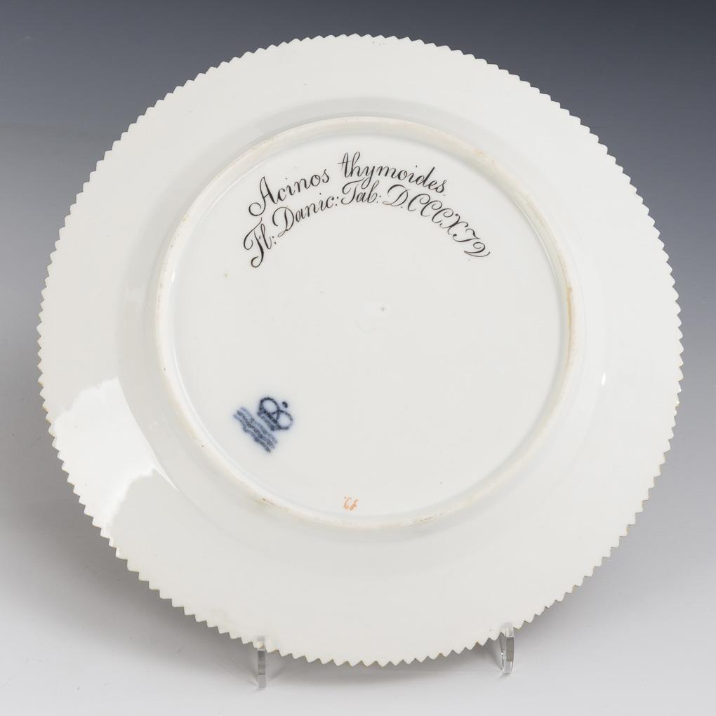 Hors d'oeuvre plate with jagged rim. The mirror depicts a plant of the field stonecrop, inscribed in Latin on the underside. 2 prongs chipped.