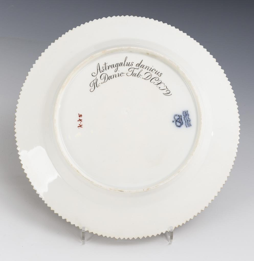 Hors d'oeuvre plate with jagged rim. In the mirror the depiction of a plant of the Danish Tragants, inscribed in Latin on the underside. 1 prong minimally bumped.