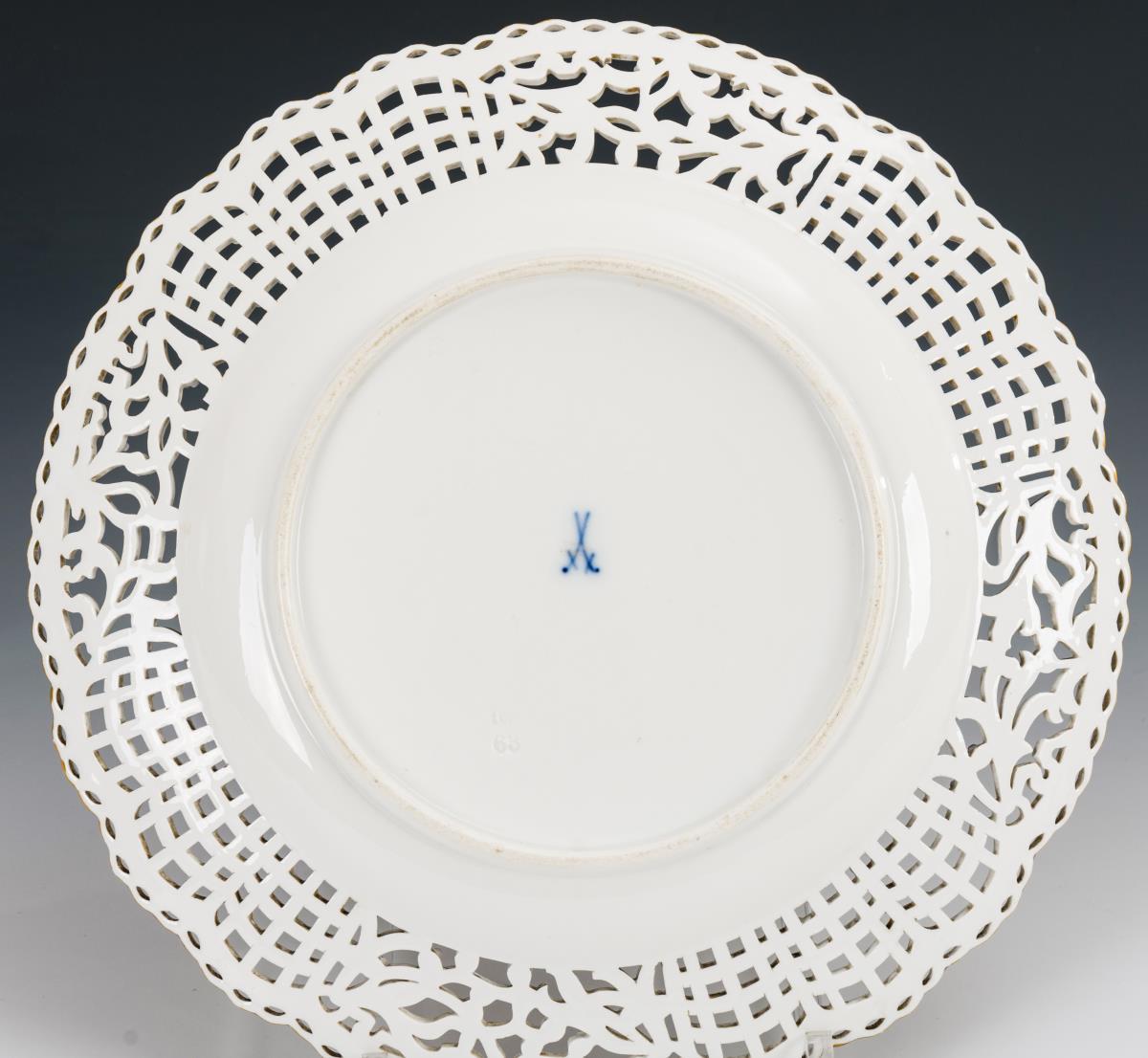 Durchbruchteller mit Vogelmalerei.