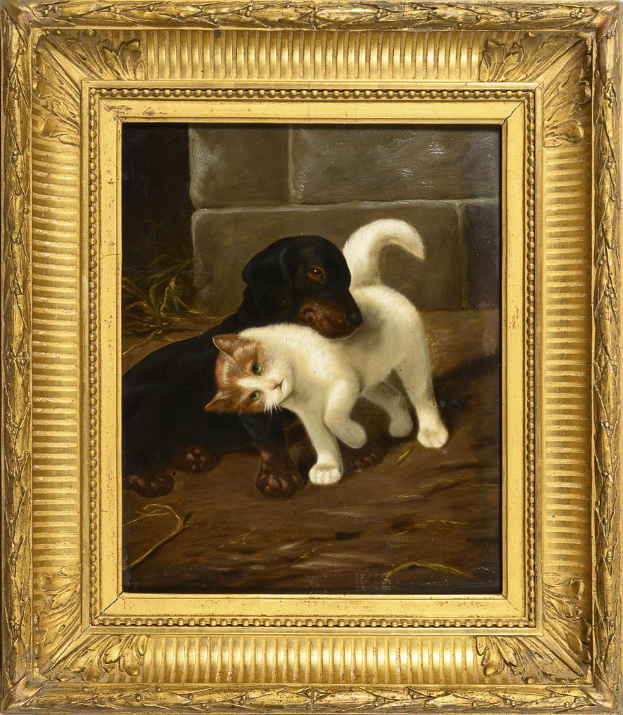 Dog and a cat in tender greeting.