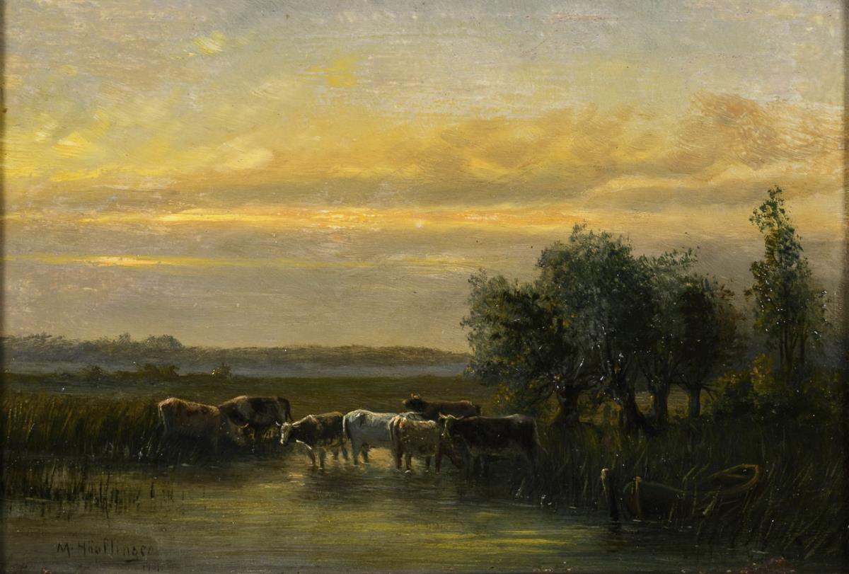 Oil/wood. Signed lower left. 1911.