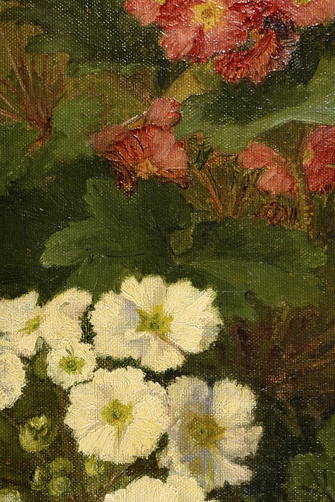 The flowers in pots in bright light. Restored.