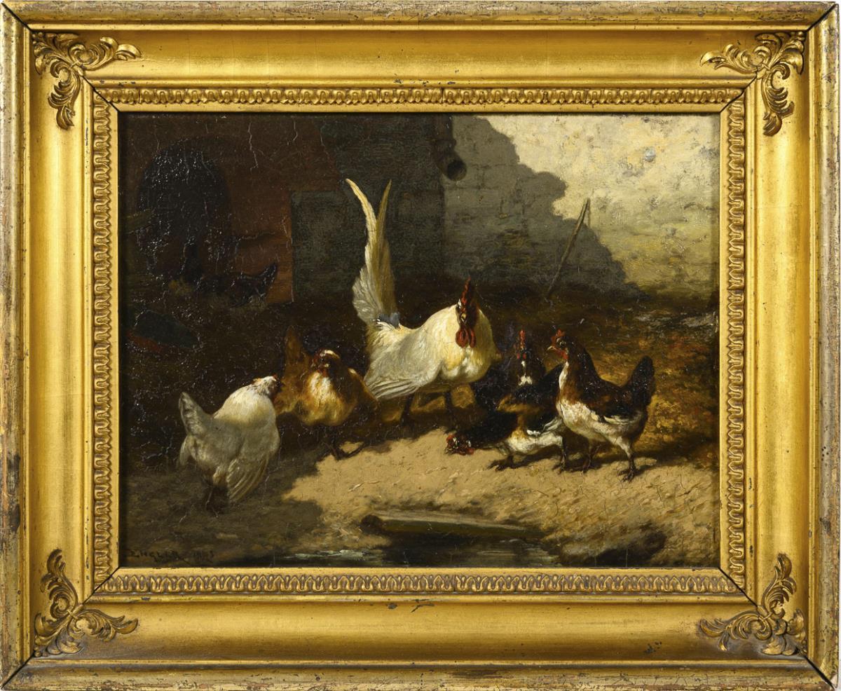 Oil/wood. Signed lower left. 1873.