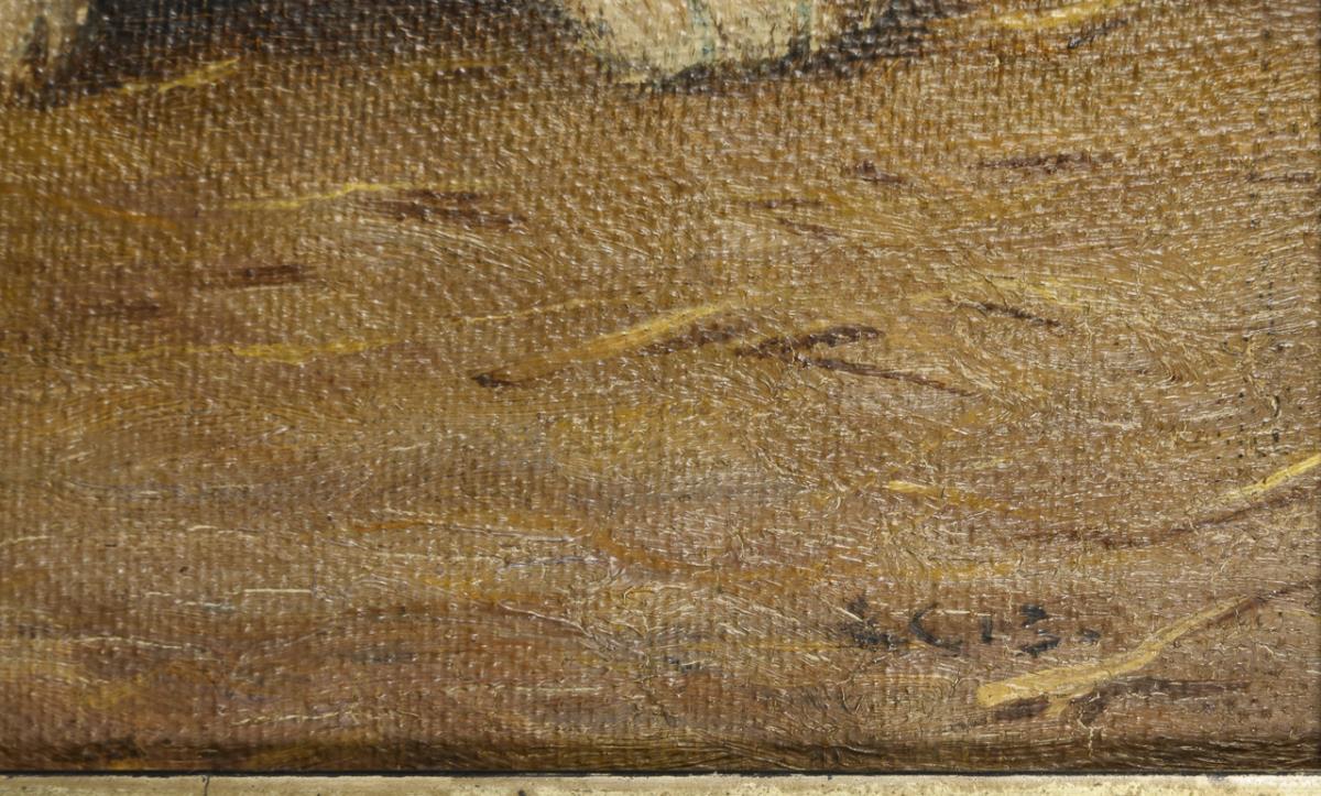 Oil/canvas/cardboard. Monogrammed lower right, verso with Danish dedication "Erinnerungsgabe an meine kleine Ragnhild von Mor. 16/8 (19)14". (19)13.