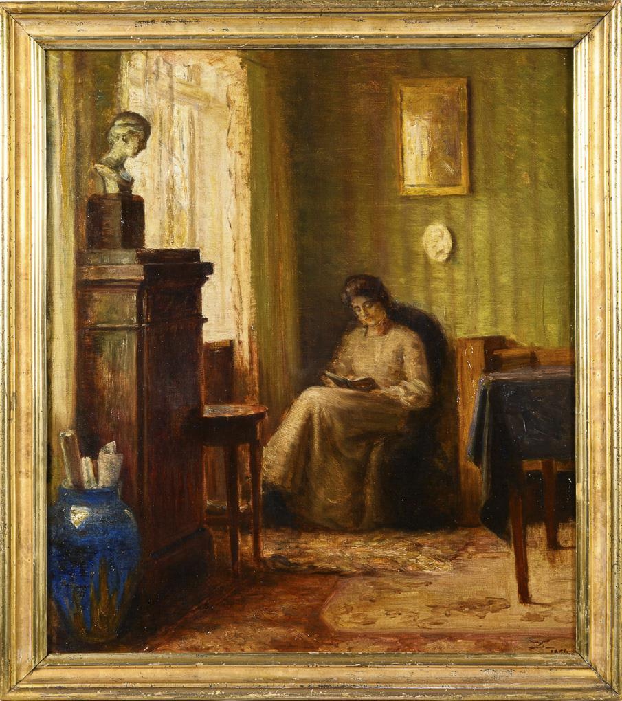 Interior with a lady reading at a window