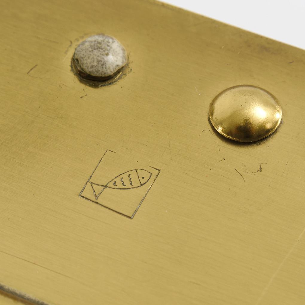 Brass marquetry, encrusted with amber. 5.5 x 33.5 x 22.5 cm. 2.5 kg.