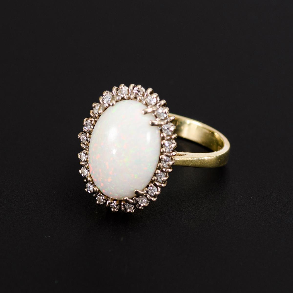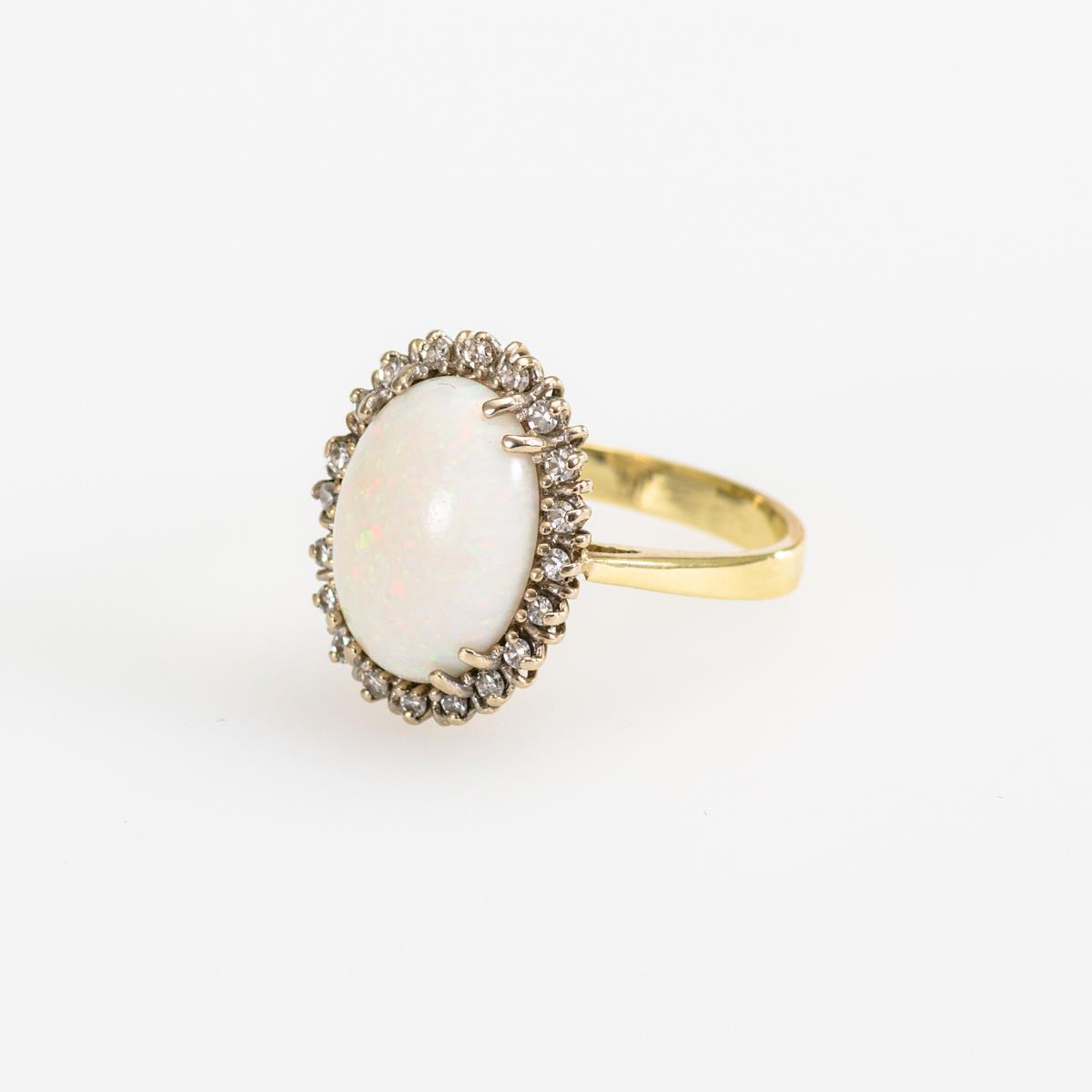 Opal ca. 2,25 ct. Diamanten 8/8 zus. ca. 0,40 ct/G-H/vvs-vs. Ringgröße 54.