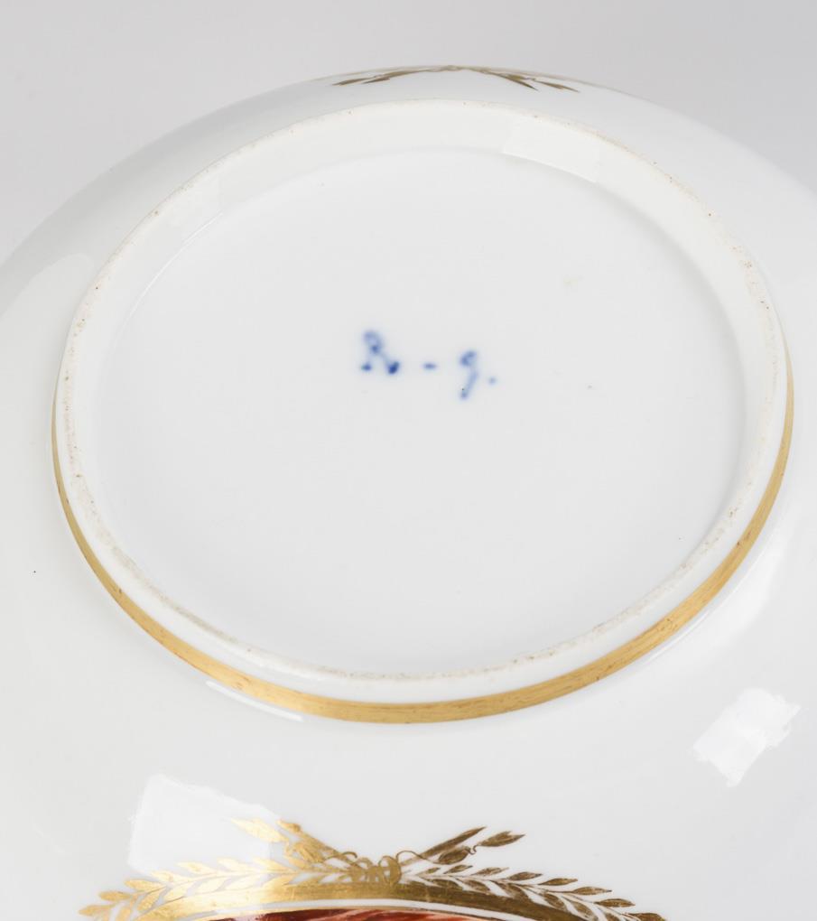 Coral red painting, gold staffage. H 8 cm, Ø 17.5 cm.