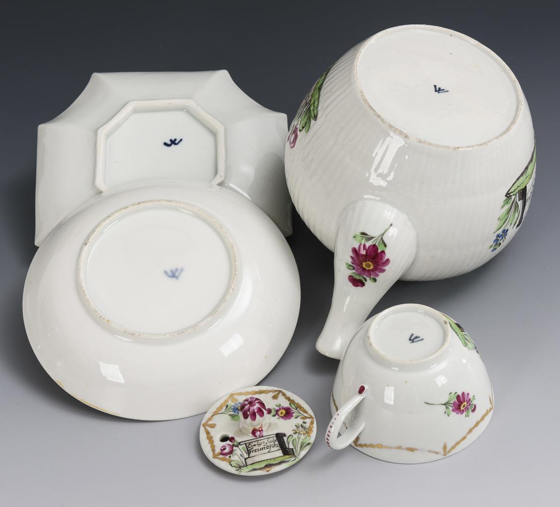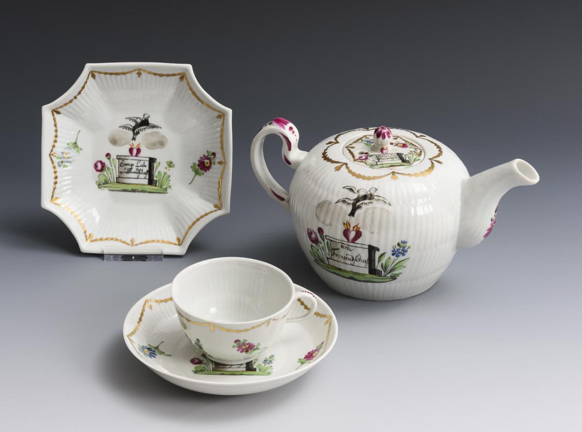 Teapot, bowl and cup with friendship motifs. Wallendorf.