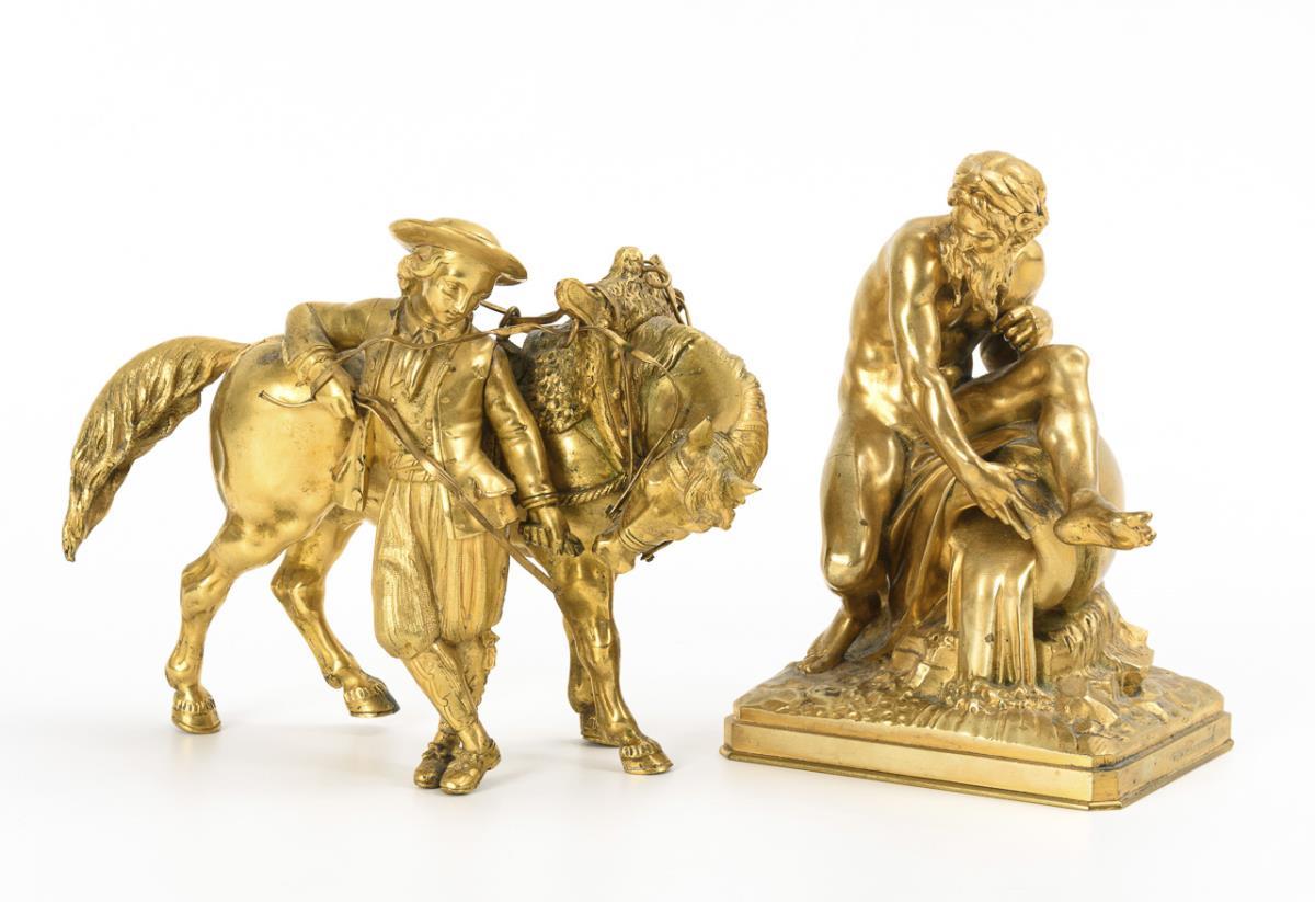 2 small sculptures: River god and horse leader