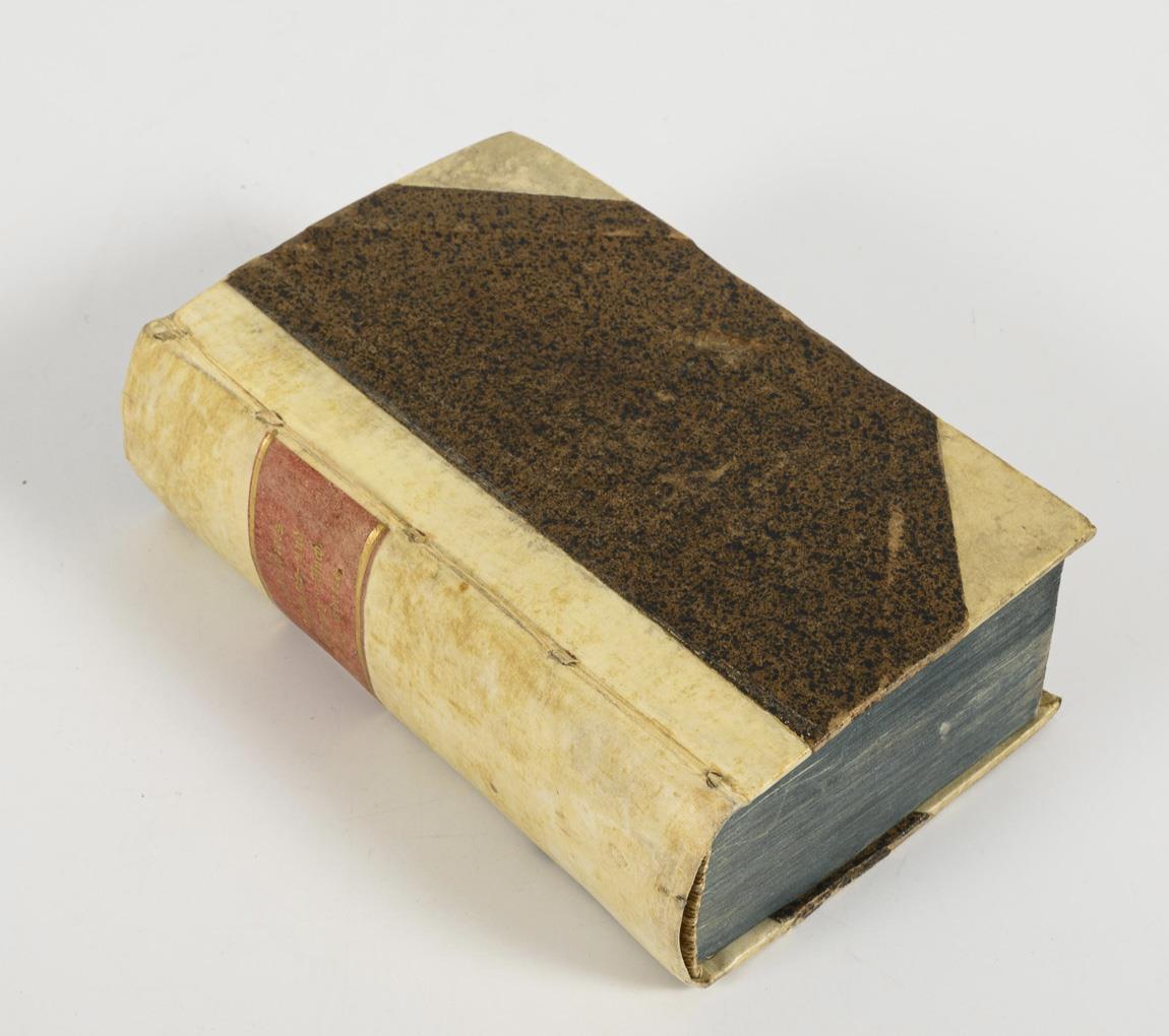 2x title page, plate with table, 5, (18), 291, (9), 244, (12), 275, (10) pages. In half vellum binding. Good condition.