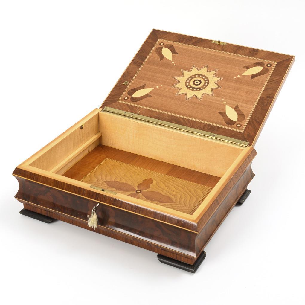 Various woods veneered/varnished (walnut, oak, light burl wood, maple, etc.). Maximum 12 x 36 x 28 cm.