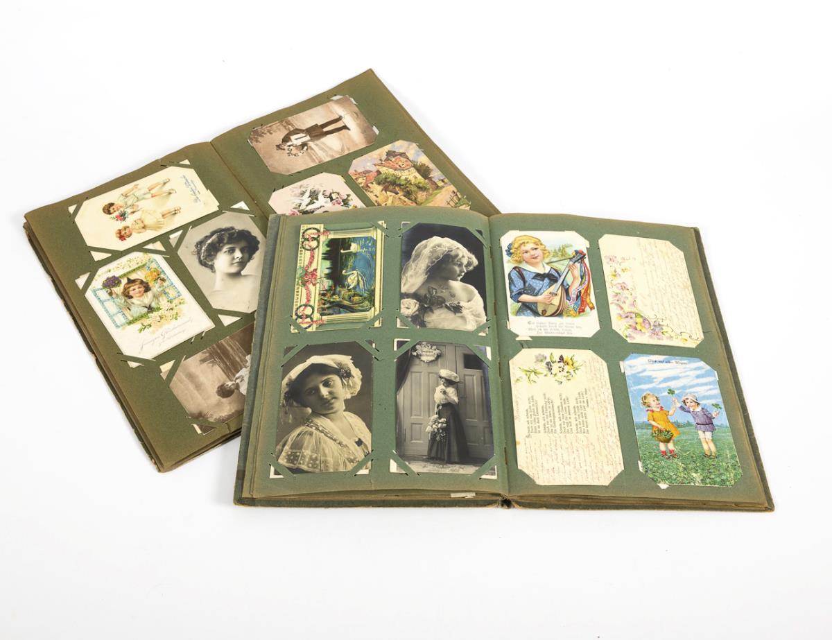2 postcard albums with approx. 240 kitsch and greeting cards