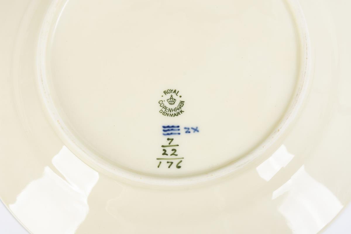 Dining plate with the relief decoration "Broken Staff". Glazed creamy white with stylized bird painting in green and brown.