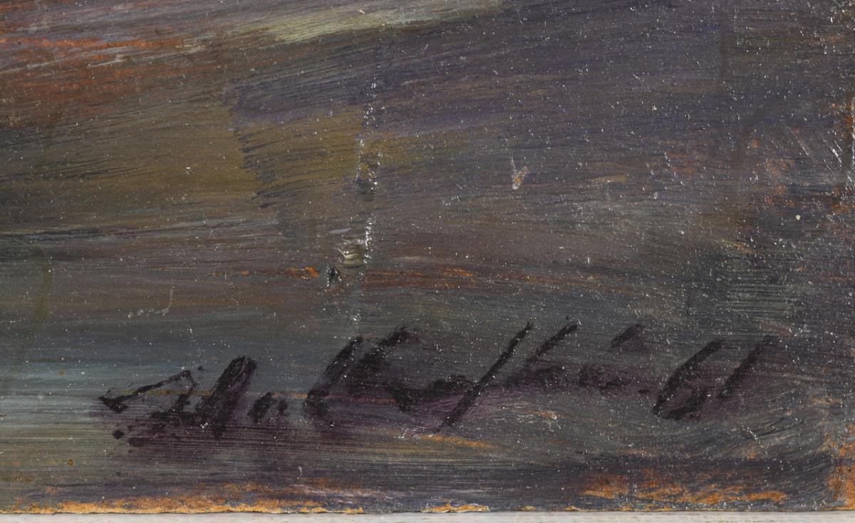 Oil/painting card. Signed lower right, verso inscribed/titled with the addition Berlin. (19)61.