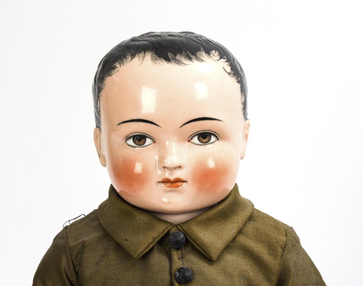 3 naked frogs or so-called "Frozen Charlottes", 1x blond, 2x with black hair. All clothed, with standing aid. No defects visible.