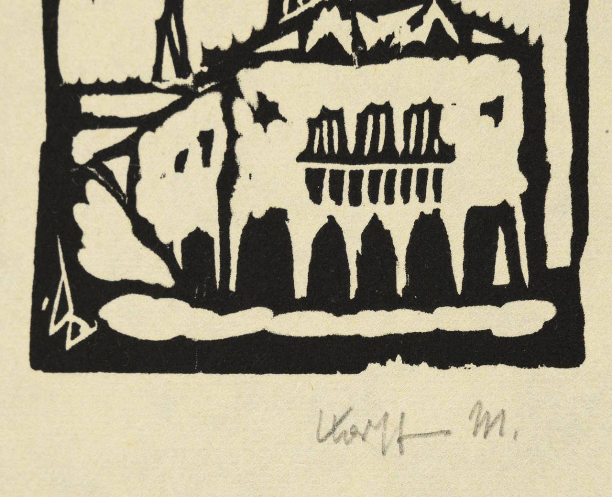 Woodcut. Pencil signature "Korff-M." (Korff-Morgner). Griffelkunst-Vereinigung Hamburg, stamp on verso: "Wilhelm Morgner, Nachlaß, Posthume Auflage".