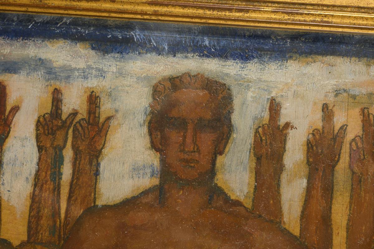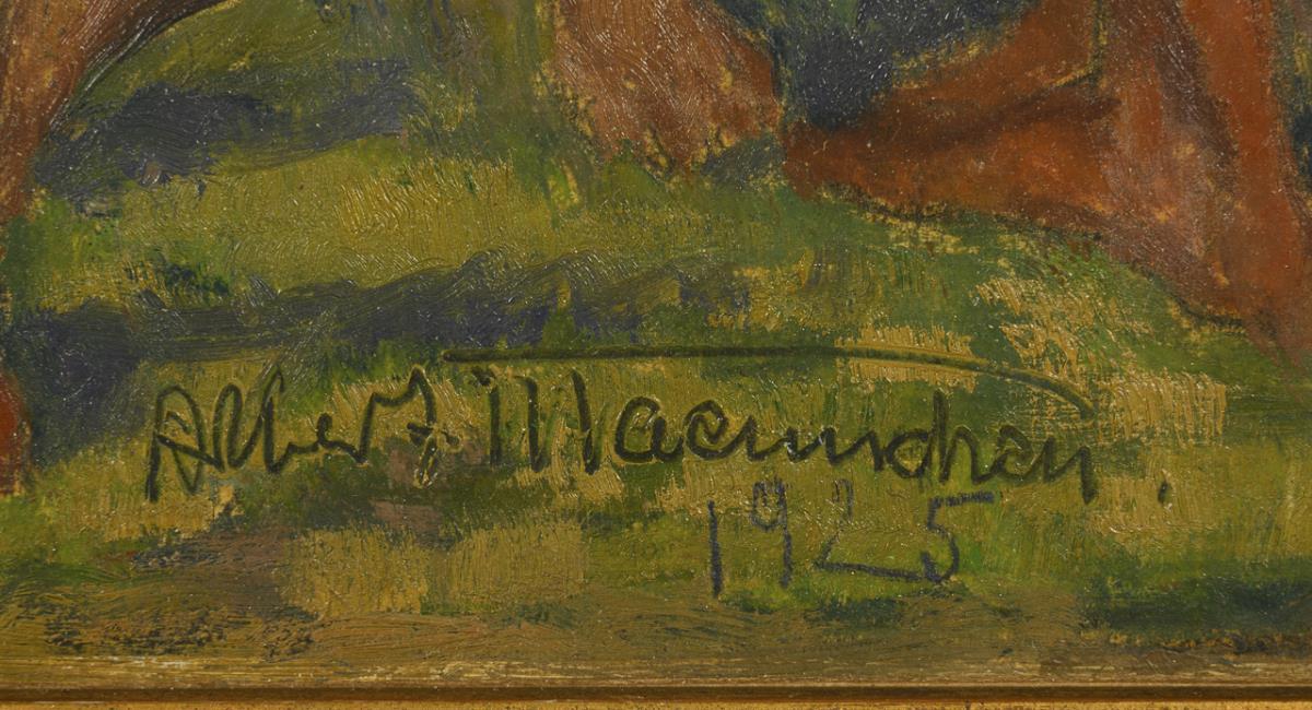 Oil/wood. Signed lower right, verso inscribed. 1925.