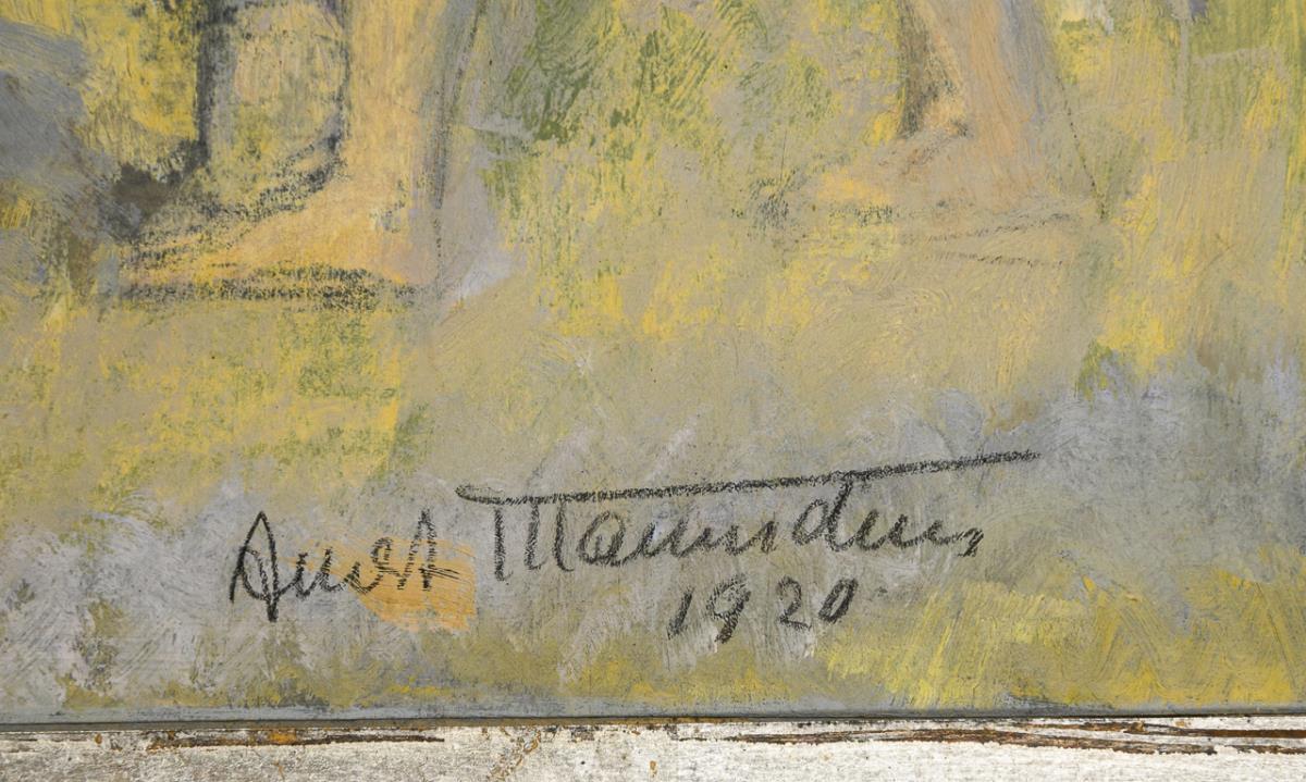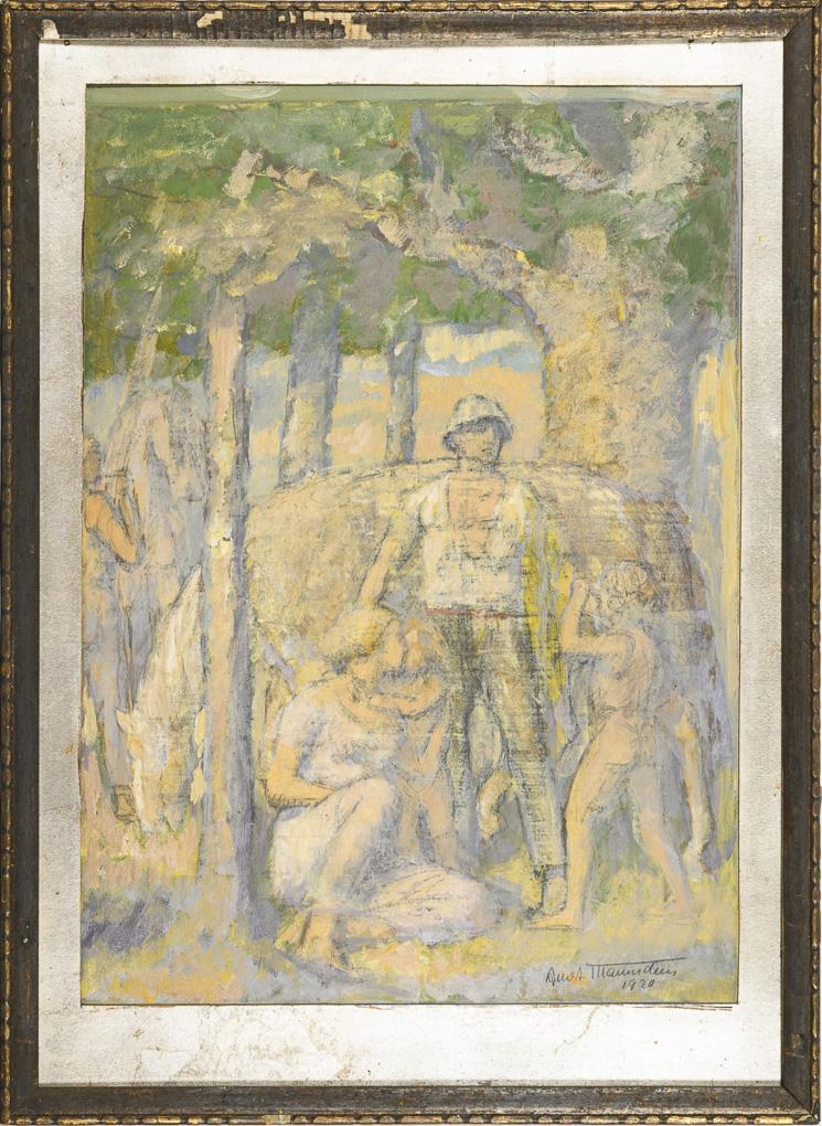 Oil/paper. Signed lower right, signed/titled on verso and addition "Entwurf für die Freske im Kammer-Gerichtsgebäude, Berlin". 1920.