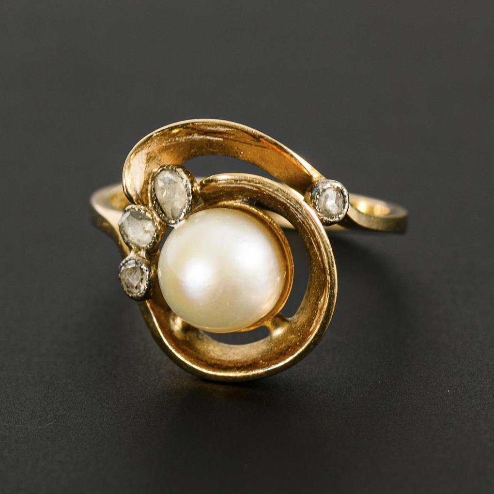 Ring with cultured pearl and old-cut diamonds.