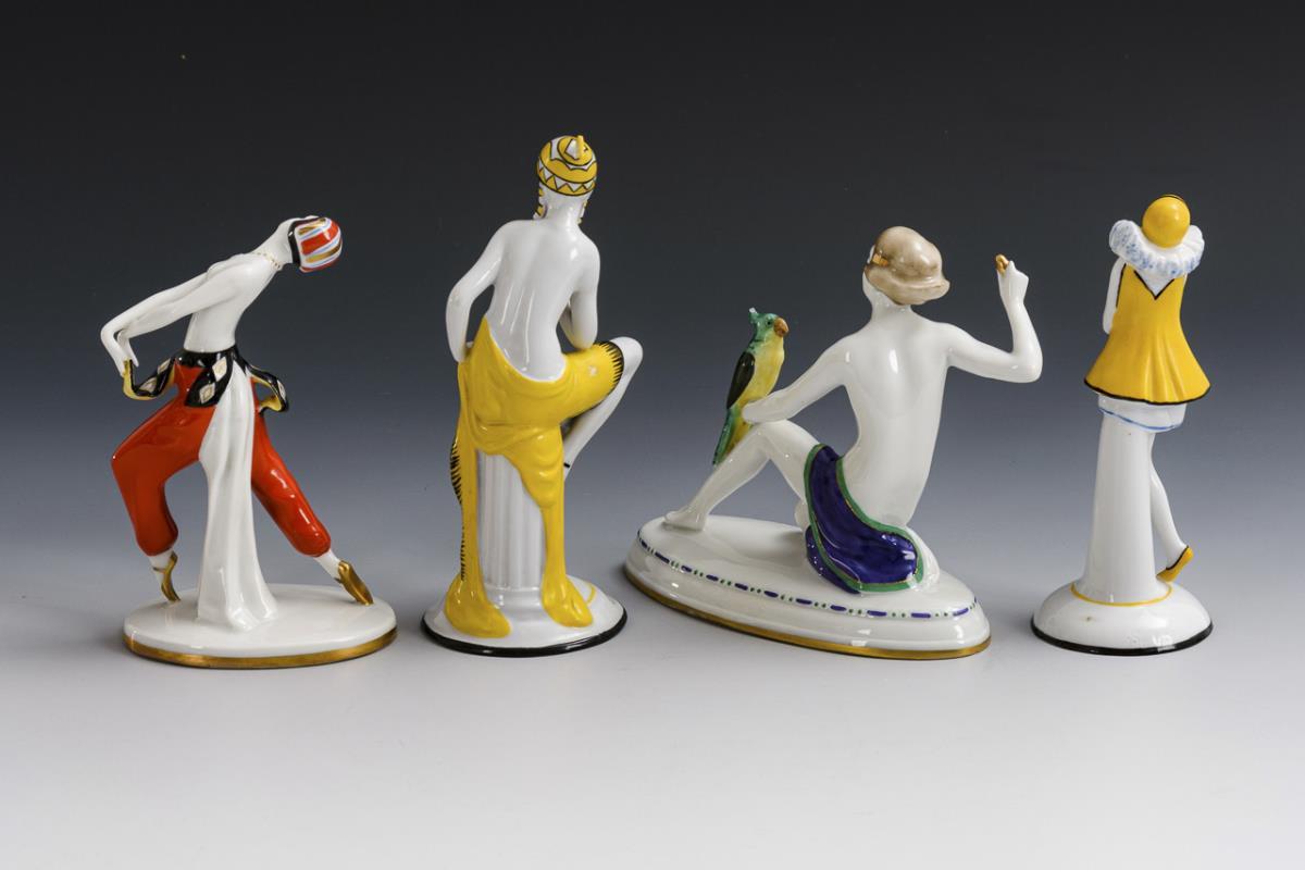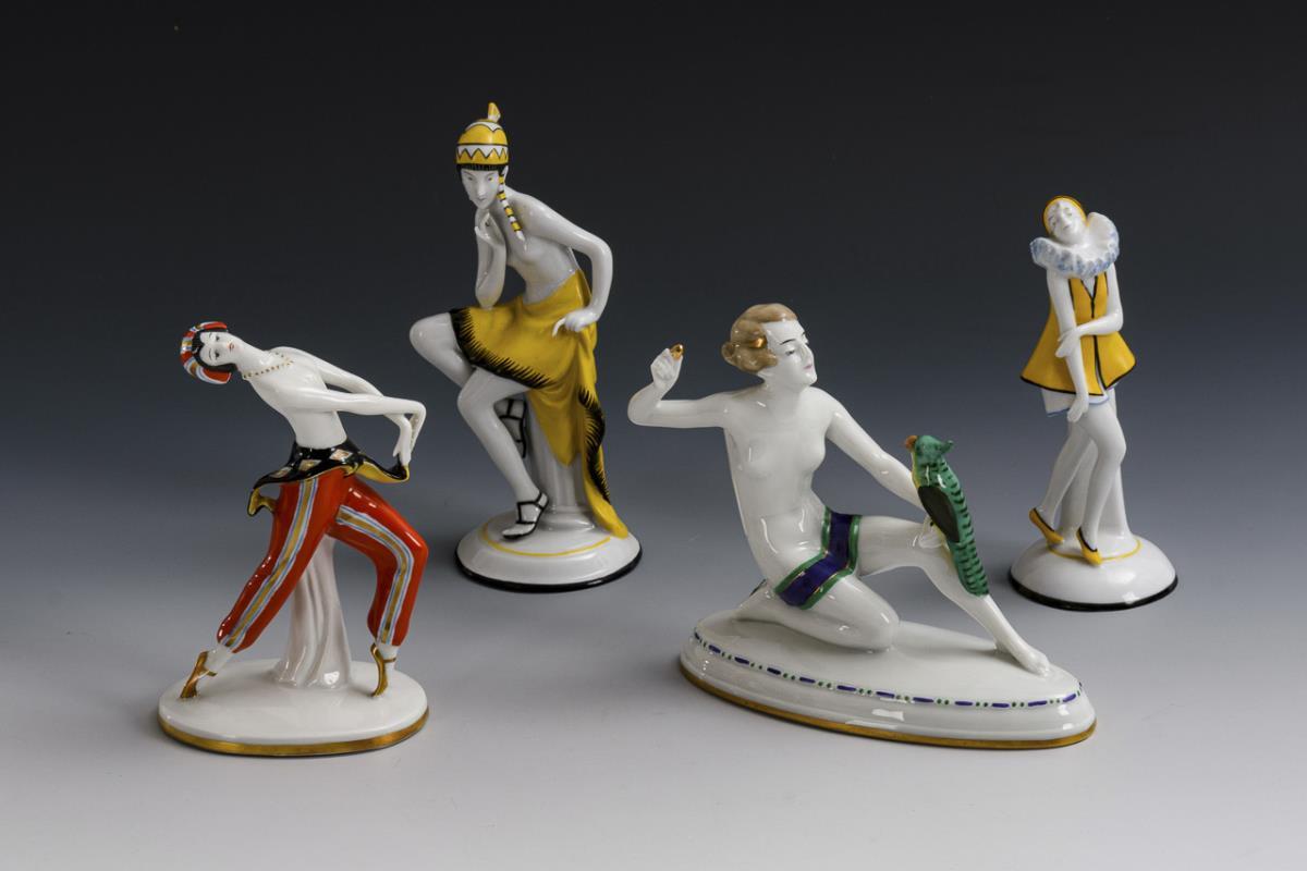 Polychrome painted, partly decorated in gold. H 14-16 cm.